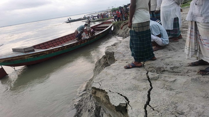 পানি উন্নয়ন বোর্ডের উপ-বিভাগীয় প্রকৌশলী রনজিত কুমার সরকার জানান, ওখানে আমাদের প্রটেকটিভ বাঁধ ছিল। ভোর রাতের দিকে ওই সেখানে ধস শুরু হয়। সকাল পর্যন্ত অন্তত দেড়শো মিটার নদীড়গর্ভে বিলিন হয়ে গেছে। খবর পেয়ে আমরা ভোর থেকেই সেখানে জিওব্যাগ ডাম্পিং শুরু করেছি। ইতিমধ্যে ভাঙন নিয়ন্ত্রণ হয়েছে।