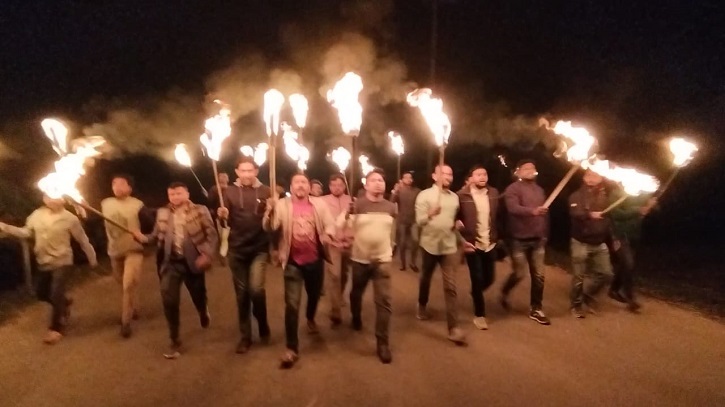 শনিবার (২৫ নভেম্বর) রাত ৮ টায় নেত্রকোনা ময়মনসিংহ মহাসড়কে সাকুয়া এলাকায় মশাল মিছিল বের করে স্বেচ্ছাসেবক ও জেলা ছাত্রদলের নেতাকর্মীরা।
