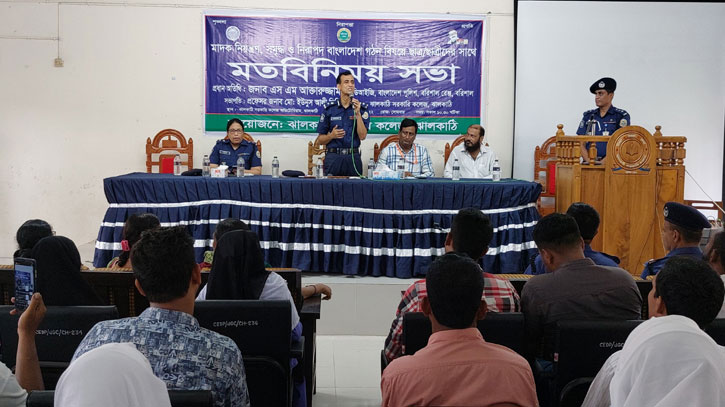 সোমবার (১৬ মে) ঝালকাঠি সরকারি কলেজ অডিটোরিয়ামে এ মতবিনিময় সভার আয়োজন করা হয়। মতবিনিময় সভায় প্রধান অতিথির বক্তব্যে রেঞ্জ ডিআইজি এস এম আক্তারিজ্জামান বলেন, ‘মাদক নিয়ন্ত্রণ, সমৃদ্ধ ও নিরাপদ বাংলাদেশ গঠনে সরকারের পাশাপাশি নতুন প্রজন্মকে এগিয়ে আসতে হবে। এসব ক্ষেত্রে শিক্ষার্থীরা অগ্রণী ভূমিকা পালন করতে পারে। তিনি আরো বলেন, ‘আমাদের দেশে যেসব প্রাকৃতিক সম্পদ রয়েছে তার যথাযথ ব্যবহারের মাধ্যমে একটি সমৃদ্ধ ও নিরাপদ বাংলাদেশ গড়া সম্ভব। এ জন্য সকলকে একযোগে কাজ করতে হবে বলেও মন্তব্য করেন ডিআিইজি।
