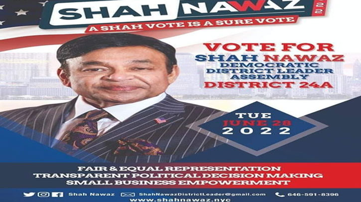 নিউইয়র্কের অ্যাসেম্বলী ডিষ্ট্রিক্ট ২৪এ থেকে আগামী প্রাইমারী নির্বাচনে ডেম্যোক্র্যাট দলীয় ডিষ্ট্রিক্ট লীডার পদে নির্বাচন করছেন বাঙ্গালী কমিউনিটির পরিচিত মুখ ব্যবসায়ী শাহ নাওয়াজ।