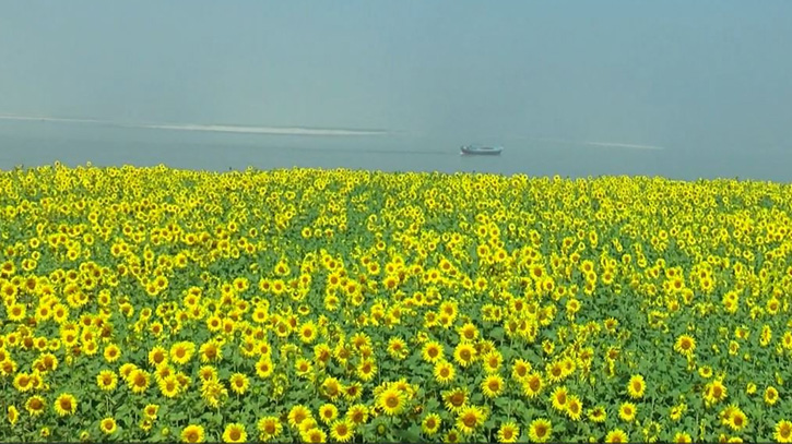 যমুনার চরে ফুটছে হাজারো সূর্যমুখী, ছুটে আসছেন ফুলপ্রেমীরা