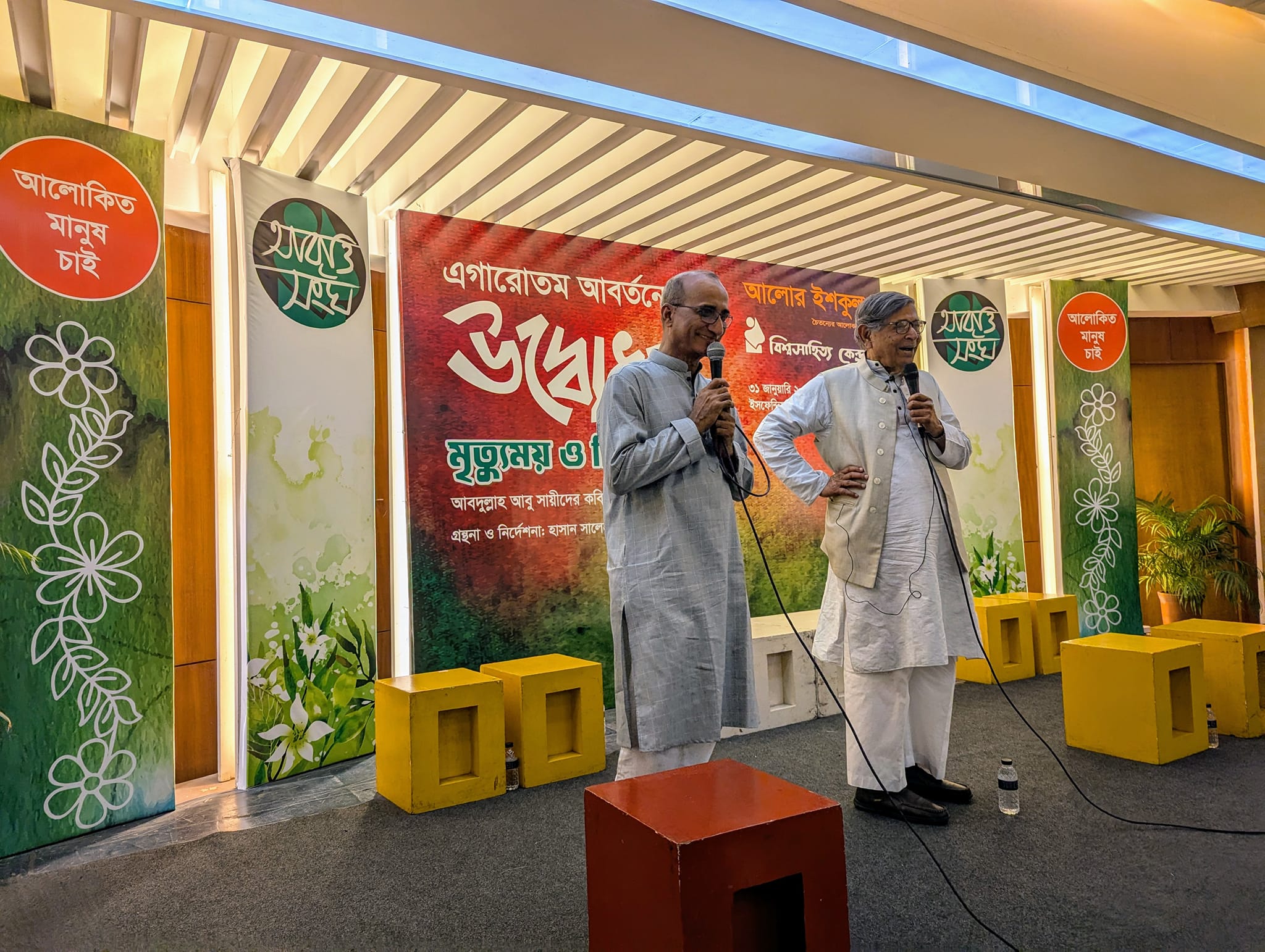 আবদুল্লাহ আবু সায়ীদের কবিতা আর কথামালা থেকে মঞ্চস্থ হয় ‘মৃত্যুময় ও চিরহরিৎ’ শিরোনামের অনুষ্ঠানটি। আবৃত্তি পরিবেশনায় ছিলেন আবৃত্তি সংঘের সাবেক শিক্ষার্থীরা। অনুষ্ঠানটি গ্রন্থনা ও নির্দেশনা করেছেন হাসান সালেহ্ জয়।