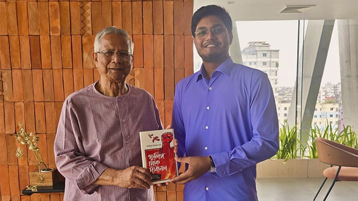 ড.ইউনূসকে নিজের বই উপহার দিলেন ছাত্রদল নেতা আবিদ