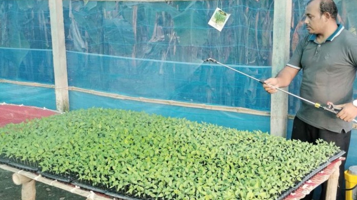 নরসিংদীতে মাটি ছাড়া সবজি চারা উৎপাদন