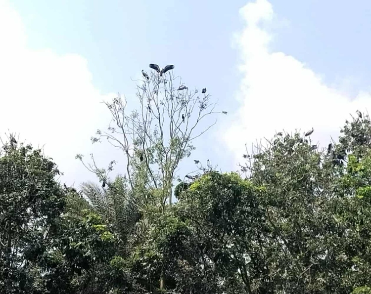 জানা গেছে, এখানকার অধিকাংশ শামুকখোলা বা ওপেনবিল স্টর্ক, পানকৌড়ি ও সারস পাখিসহ অন্যান্য অতিথি পাখি। এই অতিথি পাখির প্রধান খাদ্য হচ্ছে শামুক। প্রতিদিন সকালে পাখিগুলো আশপাশের জলাশয়, বিল ও পুকুরে যায় খাবারের সন্ধানে, খাবার নিয়ে নীড়ে ফিরে বিকাল বা সন্ধ্যায়। ততক্ষণ ডিম ও বাচ্চা পাহারায় থাকে সঙ্গী পাখি।