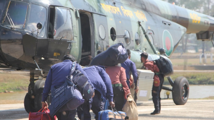 খাগড়াছড়ির ৩ কেন্দ্রে হেলিকপ্টারে নির্বাচনী উপকরণ প্রেরণ