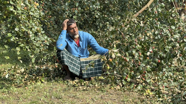 সরেজমিনে গিয়ে দেখা যায়, সদ্য কেটে ফেলা ডালে ঝুলে থাকা অপরিপক্ক বড়ইগুলো ধরে আর্তনাদ করে কাঁদছেন চাষি নাজিম শেখ ও তার স্ত্রী রাবিয়া বেগম।