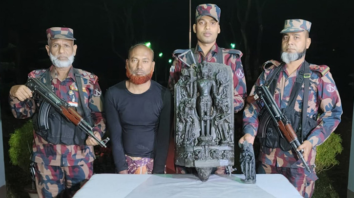 পাচারের সময় ৩০ লাখ টাকার কষ্টিপাথরের মূর্তি উদ্ধার, পাচারকারী আটক