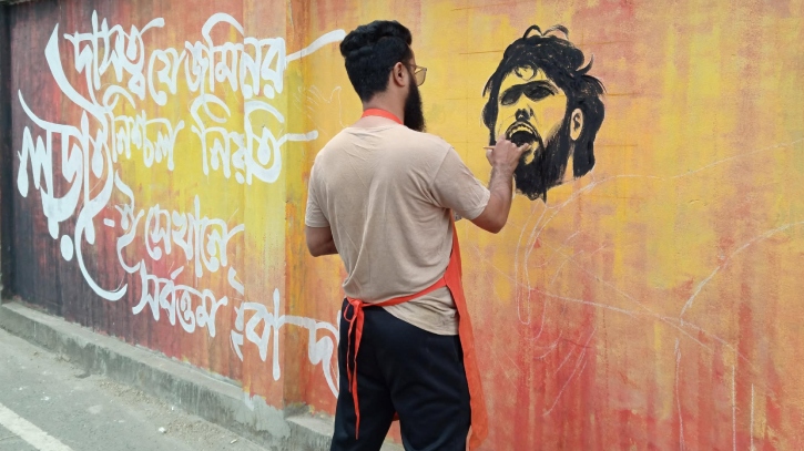 রবিবার (২৮ ডিসেম্বর) ঢাকা কলেজের দেয়ালে এ গ্ৰাফিতি অঙ্কন করা হয়। সেখানে লেখা হয়েছে, ‘দাসত্ব যে জমিনের নিশ্চল নিয়তি, লড়াই-ই সেখানে সর্বোত্তম ইবাদত।’