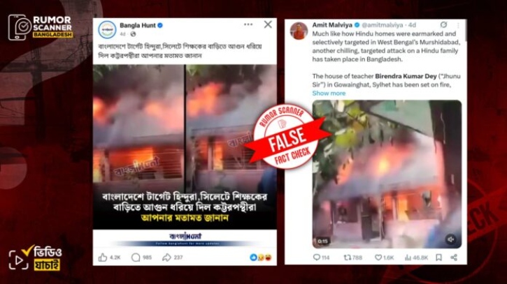 সিলেটে হিন্দু শিক্ষকের বাড়িতে অগ্নিকাণ্ড নিয়ে ভারতীয় গণমাধ্যমে ভুয়া দাবি প্রচার
