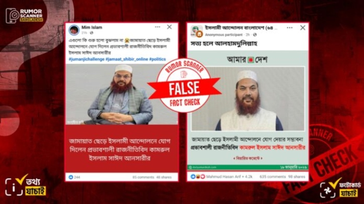 রিউমর স্ক্যানার টিমের অনুসন্ধানে জানা যায়, কামরুল ইসলাম সাঈদ জামায়াতের রাজনীতি ছেড়ে ইসলামী আন্দোলনে যোগদানের দাবিটি সঠিক নয় এবং আমার দেশও এ সংক্রান্ত কোনো ফটোকার্ড বা সংবাদ প্রকাশ করেনি। প্রকৃতপক্ষে, কামরুল ইসলাম সাঈদ মাদারীপুর-২ আসনের স্বতন্ত্র প্রার্থী হয়েছেন এবং আলোচিত দাবিটি মিথ্যা বলে তিনি নিজে রিউমর স্ক্যানারকে নিশ্চিত করেছেন।