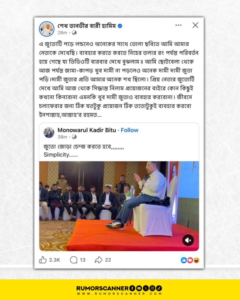 তারেক রহমানের ছেড়া জুতা পরার দাবিটি ভুয়া