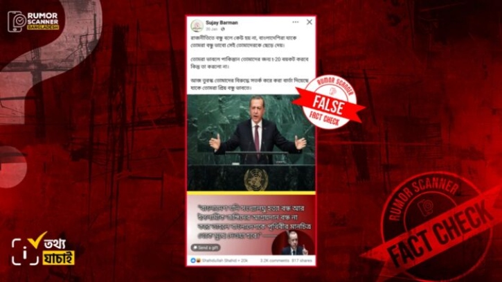 সুতরাং, বাংলাদেশের নাম মানচিত্র থেকে মুছে ফেলার হুমকি দিয়ে তুরস্কের প্রেসিডেন্ট এরদোয়ান মন্তব্য করেছেন—এ ধরনের দাবি সম্পূর্ণ মিথ্যা।