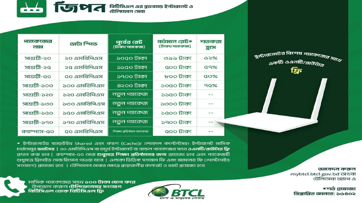 ৫০০ টাকায় ৫০ এমবিপিএস ইন্টারনেট দিচ্ছে বিটিসিএল