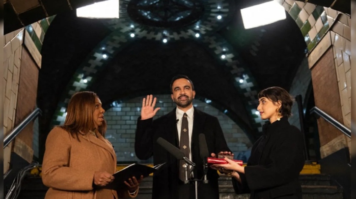 কোরআন শরিফ ছুঁয়ে শপথ নিলেন মামদানি