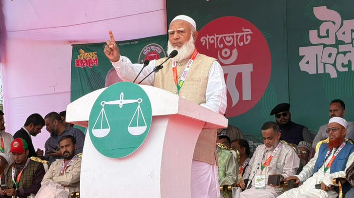 তিনি বলেন, নির্বাচন নিয়ে কেউ যদি সন্ত্রাস করতে চায়, তাহলে আল্লাহর ওপর ভরসা করে সমান পরিমাণ জবাব দিয়েন, বেশি দিয়েন না। তবে নিজে জবাব দেওয়ার আগে কর্তৃপক্ষ ও প্রশাসনকে অবহিত কইরেন। যদি দেখেন প্রশাসন করছে না, সন্ত্রাসীদের অভয়ারণ্য হয়ে গেছে, তখন এটাকে প্রতিহত করা আপনার জন্য ওয়াজিব হয়ে যাবে। তিনি ১২ তারিখে হ্যাঁ ভোট ও দাঁড়িপাল্লা বিজয় নিশ্চিত করে ঘরে ফিরে শোকরানা নামাজ আদায়ের আহ্বান জানান।