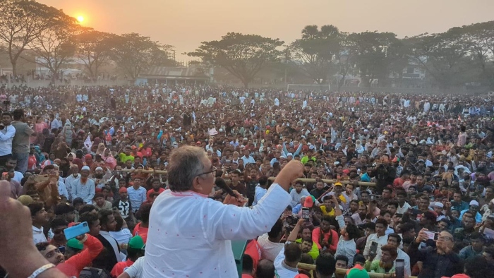 সোমবার (৯ ফেব্রুয়ারি) হালুয়াঘাট পৌর শহরের হালুয়াঘাট উচ্চ বিদ্যালয় মাঠে অনুষ্ঠিত স্মরণকালের এই বিশাল সমাবেশে তিনি বলেন, ধানের শীষই মুক্তি, গণতন্ত্র ও জনগণের ভাগ্য ফেরানোর একমাত্র পথ। তিনি সবাইকে ধানের শীষ প্রতীকে আস্থা রাখার আহ্বান জানিয়ে বলেন, কৃষক কাঁদছে, যুবক বেকার, গারো পাহাড়ের পাদদেশের জনপদগুলো আজও অনুন্নত—এই অবহেলার জবাব দেবে ধানের শীষ।