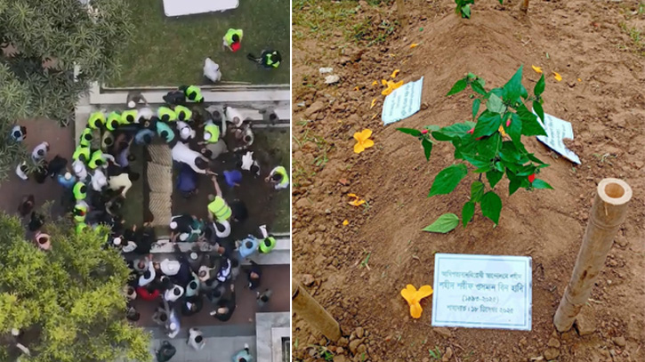 চিরনিদ্রায় শায়িত হয়েছেন বিপ্লবী শরীফ ওসমান হাদি। ঢাকা বিশ্ববিদ্যালয়ের কেন্দ্রীয় মসজিদের পাশে বিদ্রোহী কবি কাজী নজরুল ইসলামের সমাধির পাশেই ওসমান হাদিকে দাফন করা হয়েছে। পরে তার কবরে রক্তজবা ফুলগাছ রোপণ করা হয়েছে।