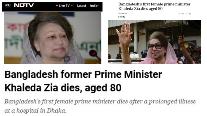 আন্তর্জাতিক গণমাধ্যমে বেগম খালেদা জিয়ার মৃত্যুর সংবাদ