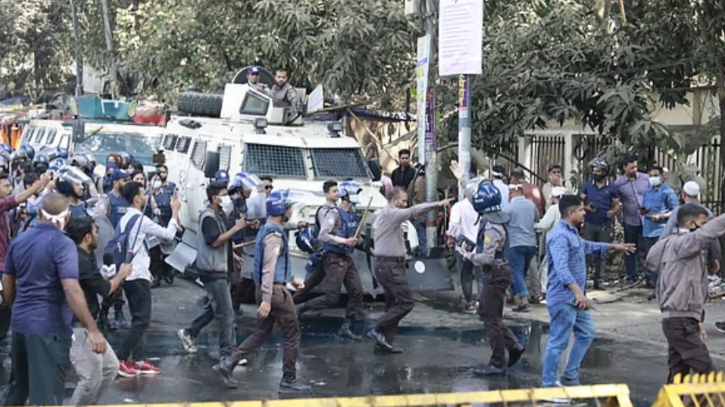 নবম পে স্কেল ঘোষণার দাবিতে প্রধান উপদেষ্টার বাসভবন যমুনার সামনে অবস্থান নেওয়া সরকারি কর্মকর্তা-কর্মচারীদের ওপর দফায় দফায় লাঠিচার্জ, টিয়ারশেল ও সাউন্ড গ্রেনেড নিক্ষেপ করেছে পুলিশ। এতে যমুনার সামনে থেকে সরে গেছেন আন্দোলনরত সরকারি কর্মকর্তা-কর্মচারীরা।