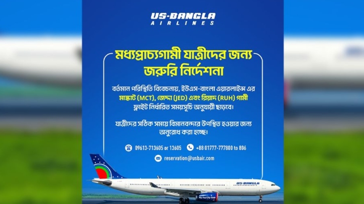 জেদ্দা-রিয়াদ-মাস্কাটের ফ্লাইট নির্ধারিত সময়ে পরিচালনা করবে ইউএস-বাংলা