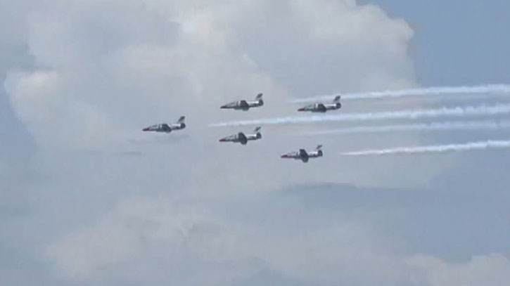 বিমান বাহিনীর মহড়ায় লাল সবুজের পতাকা উড়লো পদ্মার বুকে