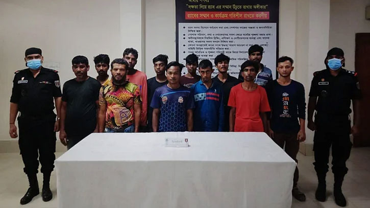 গ্রেফতার ব্যক্তিরা হলেন, হারুন সরদার (৫৫), মো. বাহারাম (৪৮), সুমন হোসেন (৪৫), মো. মানিক (২৮), সুজন (২৮), মো. রাসেল (২৫), মনির হোসেন (২৪), মো. ওমর ফারুক (২৪), শরিফুল ইসলাম (২২), এনামুল হক (২২), আশরাফুল ইসলাম (২২), মো. হৃদয় (২০), মো. সোহাগ (২০) ও সুজন মিয়া (২০)।