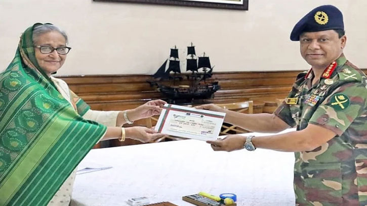 বৃহস্পতিবার (১৪ জুলাই) গণভবনে বাংলাদেশ সেনাবাহিনীর পক্ষ থেকে এ চেক হস্তান্তর করেন তিনি।