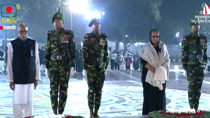 শহীদ মিনারে রাষ্ট্রপতি-প্রধানমন্ত্রীর শ্রদ্ধা