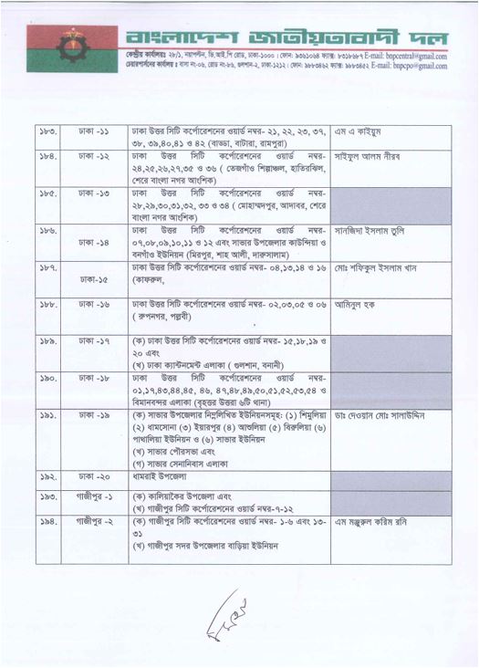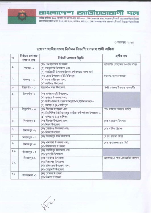 কোন আসনে কাকে প্রার্থী করলো বিএনপি, দেখে নিন এক নজরে