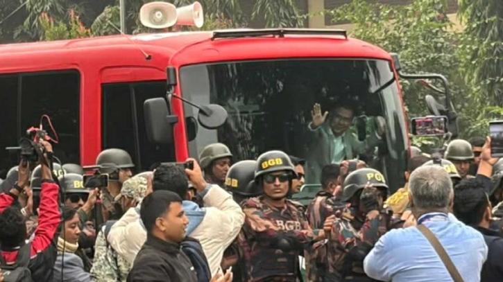 ‘সবার আগে বাংলাদেশ’ লেখা বাসে উঠে সংবর্ধনাস্থলে যাচ্ছেন তারেক রহমান