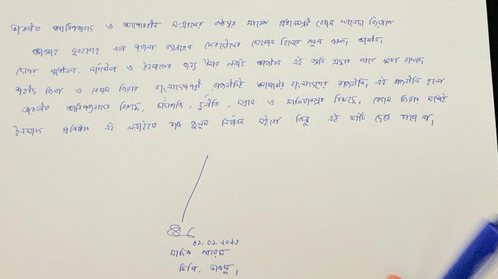 সদ্যপ্রয়াত সাবেক প্রধানমন্ত্রী ও বিএনপি চেয়ারপার্সন বেগম খালেদা জিয়ার শোকবইয়ে সাক্ষর করেছেন ডাকসু ভিপি সাদিক কায়েম। এ সময় তিনি শোকবইয়ে লিখেছেন, ইনসাফ প্রতিষ্ঠায় বেগম জিয়ার মতো জুলুম-নির্যাতন সইবো, কিন্তু এই মাটি ছেড়ে যাবো না।