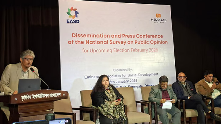 আসন্ন জাতীয় নির্বাচনকে সামনে রেখে ভোট দেওয়ার অভিপ্রায় নিয়ে এমিনেন্স অ্যাসোসিয়েটস ফর সোস্যাল ডেভেলপমেন্ট (ইএএসডি) করা এক জনমত জরিপে এ তথ্য উঠে এসেছে।