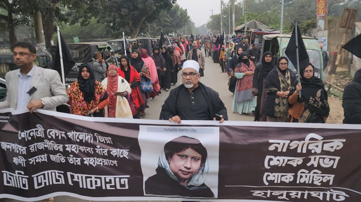 খালেদা জিয়ার মৃত্যুতে হালুয়াঘাটে নাগরিক শোকসভা ও শোক মিছিল