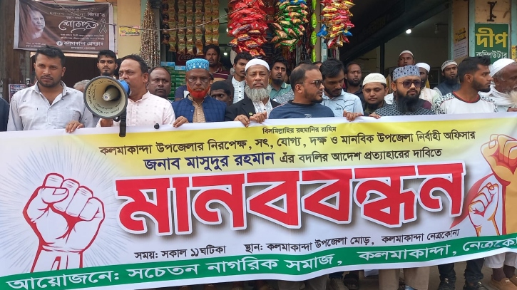 বক্তারা আরও বলেন, এমন একজন কর্মকর্তার হঠাৎ বদলি উপজেলাবাসীর মধ্যে হতাশার সৃষ্টি করেছে। জনস্বার্থ বিবেচনায় অবিলম্বে বদলির আদেশ প্রত্যাহার করে তাকে কলমাকান্দায় বহাল রাখার দাবি জানান। দাবি মানা না হলে আরও কঠোর কর্মসূচির ঘোষণাও দেন তারা।
