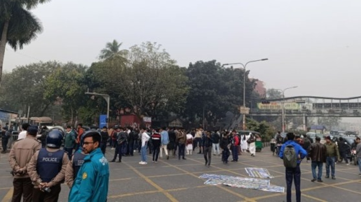 রানা হত্যার বিচার দাবি, ফার্মগেটে শিক্ষার্থীদের সড়ক অবরোধ