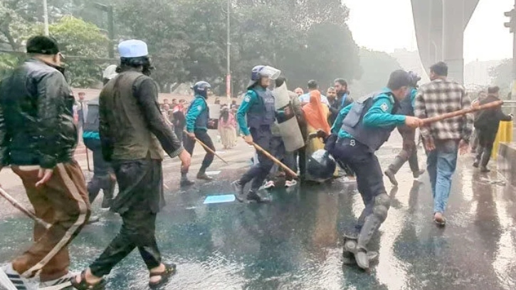 রবিবার (৪ জানুয়ারি) বেলা দেড়টার দিকে ব্যাপক সংঘর্ষ বাধে। এ সময় মুহূর্মহূ সাউন্ড গ্রেনেড ও টিয়ারশেল বিস্ফোরণ ঘটানো হয়।