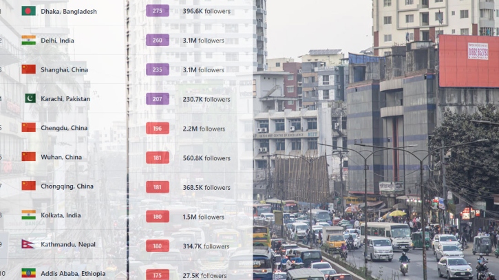 ঢাকার পরেই দূষিত শহরের তালিকায় রয়েছে ভারতের দিল্লি এবং চীনের শাংহাই। শহরগুলোর একিউআই স্কোর যথাক্রমে ২৬০ ও ২৩৫।