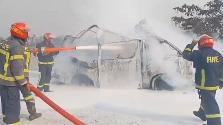 মাওয়া এক্সপ্রেসওয়েতে চলন্ত অ্যাম্বুলেন্সে আগুন, অল্পের জন্য প্রাণ রক্ষা