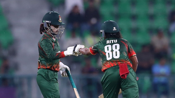 দলকে খাদের কিনারা থেকে টেনে তোলেন রিতু মনি। তার লড়াকু ব্যাটিংয়ে ম্যাচের নিয়ন্ত্রন নেয় বাংলাদেশ। ফাহিমা ২৮ ও জান্নাতুল ফেরদৌস ১৯ করেন। শেষ পর্যন্ত নাহিদাকে নিয়ে দলকে জয়ের লক্ষ্যে পৌঁছে দেন রিতু। খেলেন ৬৭ রানের হার না মানা ইনিংস। ১৮তে নটআউট থাকেন নাহিদা। ৮ বল হাতে রেখেই ম্যাচ জিতে নেয় বাংলাদেশ।