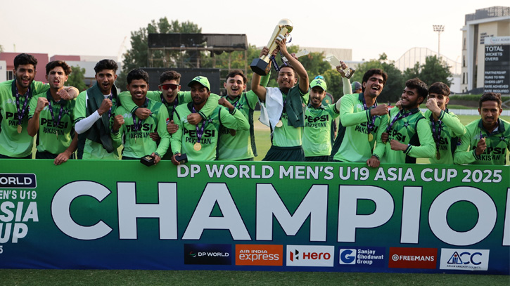 এর আগে রবিবার দুবাইয়ের আইসিসি একাডেমিতে অনুষ্ঠিত ফাইনালে ভারতকে রীতিমতো বিধ্বস্ত করে পাকিস্তান অনূর্ধ্ব-১৯ দল। ফাইনালে বিশেষভাবে নজর কেড়েছেন ওপেনার সামির মিনহাস। চাপের ম্যাচে ১৭২ রানের অনবদ্য ইনিংস খেলে পাকিস্তানের বিশাল সংগ্রহের ভিত গড়ে দেন তিনি।