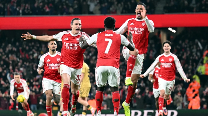 মঙ্গলবার (২৩ ডিসেম্বর) নিজেদের মাঠ এমিরেটস স্টেডিয়ামে লিগ কাপের কোয়ার্টার ফাইনালে ক্রিস্টাল প্যালেসকে প্রতিপক্ষ পায় গানাররা। ম্যাচে আধিপত্য নিয়েও প্রথমার্ধে গোল পায়নি স্বাগতিকরা। অবশেষে ৮০ মিনিটে প্রতিপক্ষের ফরাসি সেন্টার-ব্যাক মাক্সেন্স লাকরোয়িক্সোর আত্মঘাতি গোলে এগিয়ে যায় আর্সেনাল।