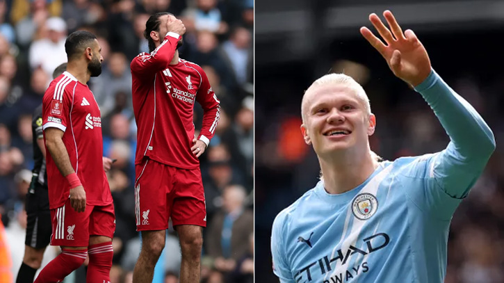প্রিমিয়ার লিগের পয়েন্ট টেবিলের পাঁচে থাকা লিভারপুল এফএ কাপে সুবিধা করতে পারলো না। কোয়ার্টার ফাইনাল থেকেই বিদায় নিলো মোহাম্মদ সালাহরা। শনিবার রাতে ম্যানচেস্টার সিটির কাছে ৪ গোল খেয়ে বিদায় নিয়েছে দ্য রেডস। লিভারপুলের জালে একহালি গোল দেওয়ার নেপথ্যে ছিলো হালান্ডের হ্যাট্রিক।