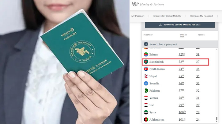হেনলি অ্যান্ড পার্টনার্স-এর ২০২৬ সালের হালনাগাদ বৈশ্বিক পাসপোর্ট সূচকে বাংলাদেশের অবস্থান এখন ৯৩তম, যা আগের সূচকে ছিল ৯৫তম। অর্থাৎ নতুন তালিকায় বাংলাদেশ দুই ধাপ এগিয়েছে। এতে করে অগ্রিম ভিসা ছাড়াই বেশ কিছু দেশে যাওয়ার সুযোগ তৈরি হয়েছে বাংলাদেশিদের জন্য।