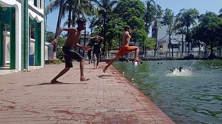 গরমে অতিষ্ঠ সিলেটের লোকজন। প্রায় স্তব্ধ জীবনযাত্রা। রাস্তাঘাটে মানুষের চলাচল তেমন একটা নেই। যুবকরা গরম থেকে বাঁচতে বিভিন্ন জলাধারে সাঁতার কেটে গরম থেকে মুক্তির চেষ্টা করছেন।
